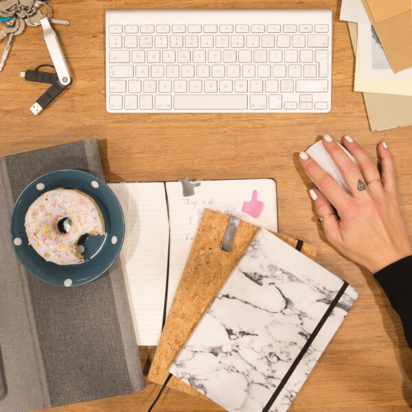 Eco notitieboek gemaakt van kurk met 160 pagina’s van 80g. Inclusief bamboe touchscreen balpen.