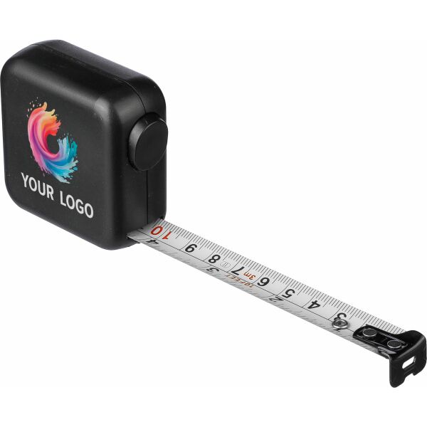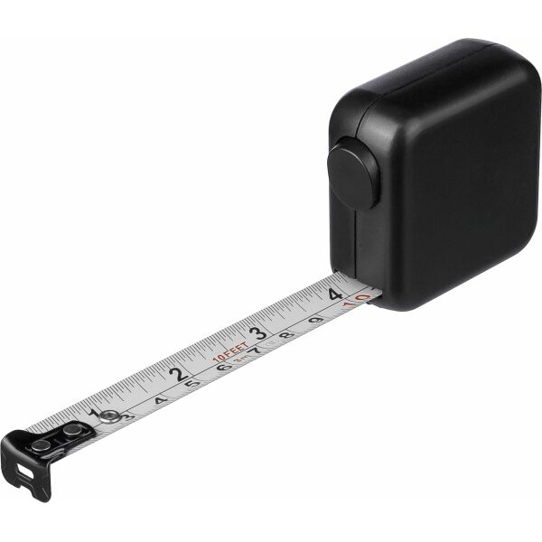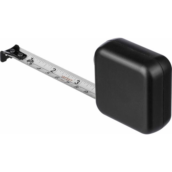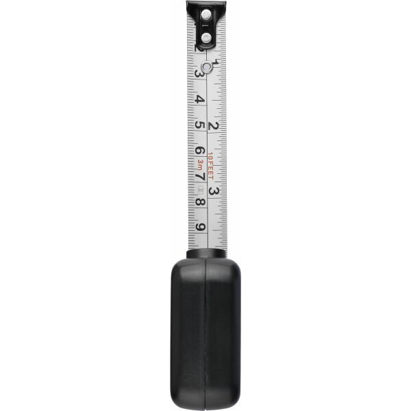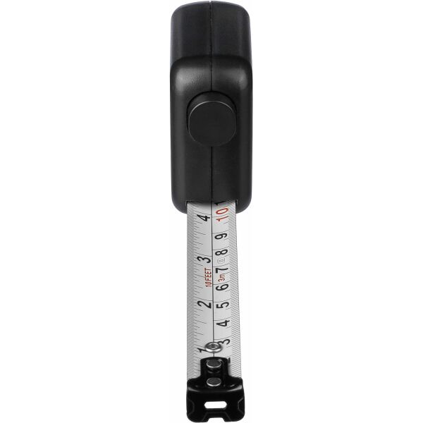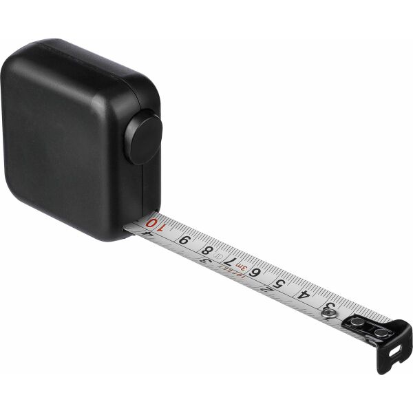 ABS meetlint. 3 meter lang. Lint van metaal (16 mm) bedrukt met zowel centimeters als inches. Ultrasoon geassembleerd (schroefloos). Voorzien van drukknop met vergrendeling. Per stuk verpakt in een bruin kartonnen doos.