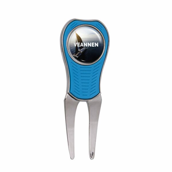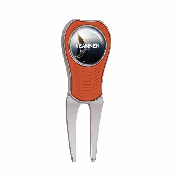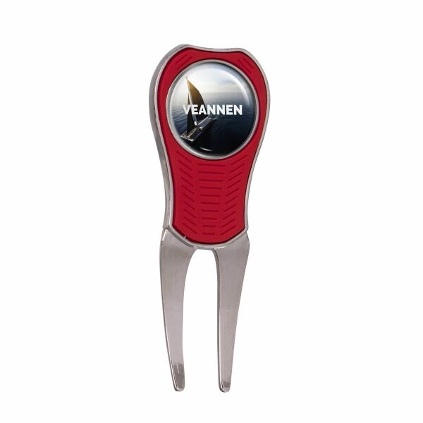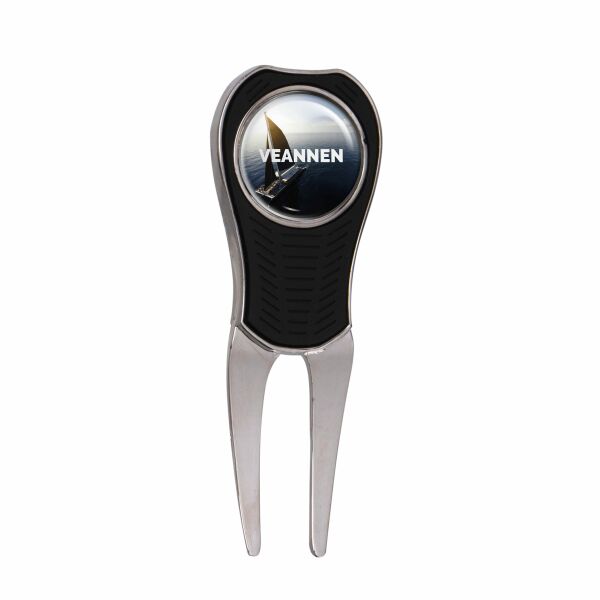 Metalen pitchfork met rubberen greep, voorzien van een magentische ball marker met doming
