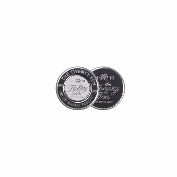 40 mm metalen ball marker 2-zijdig geëmailleerd voorzien van een 24 mm 2-zijdig geëmailleerde ball marker. Verpakt in een luxe pouch