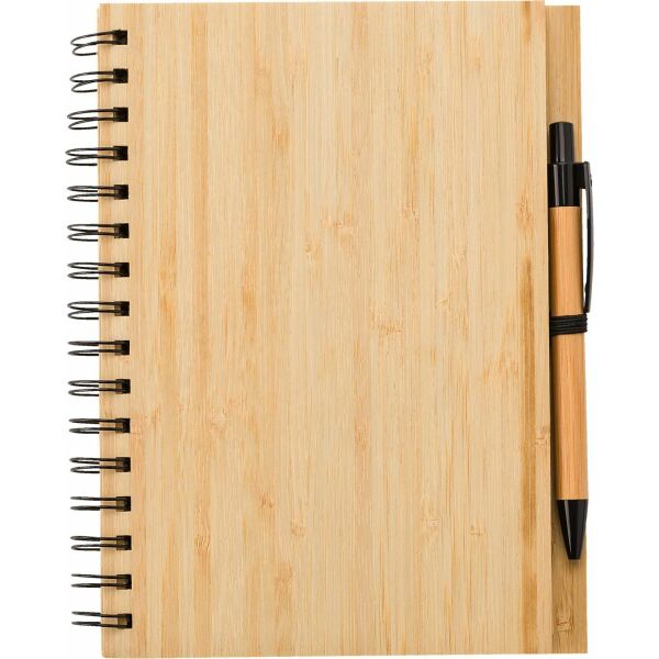 Bamboe notitieboek A5 met 80 gelinieerde vellen inclusief bamboe balpen met ABS top en punt. De balpen is blauwschrijvend.